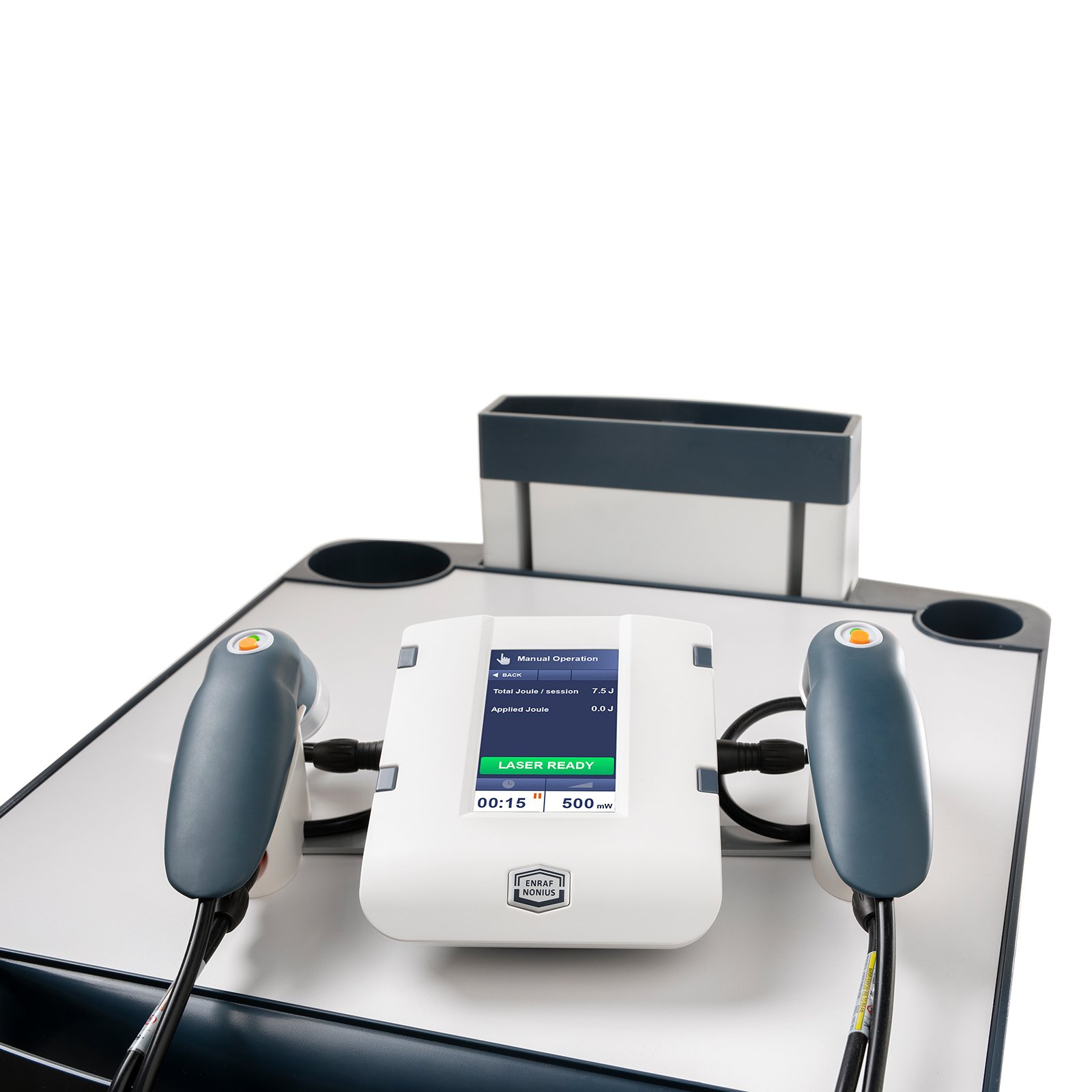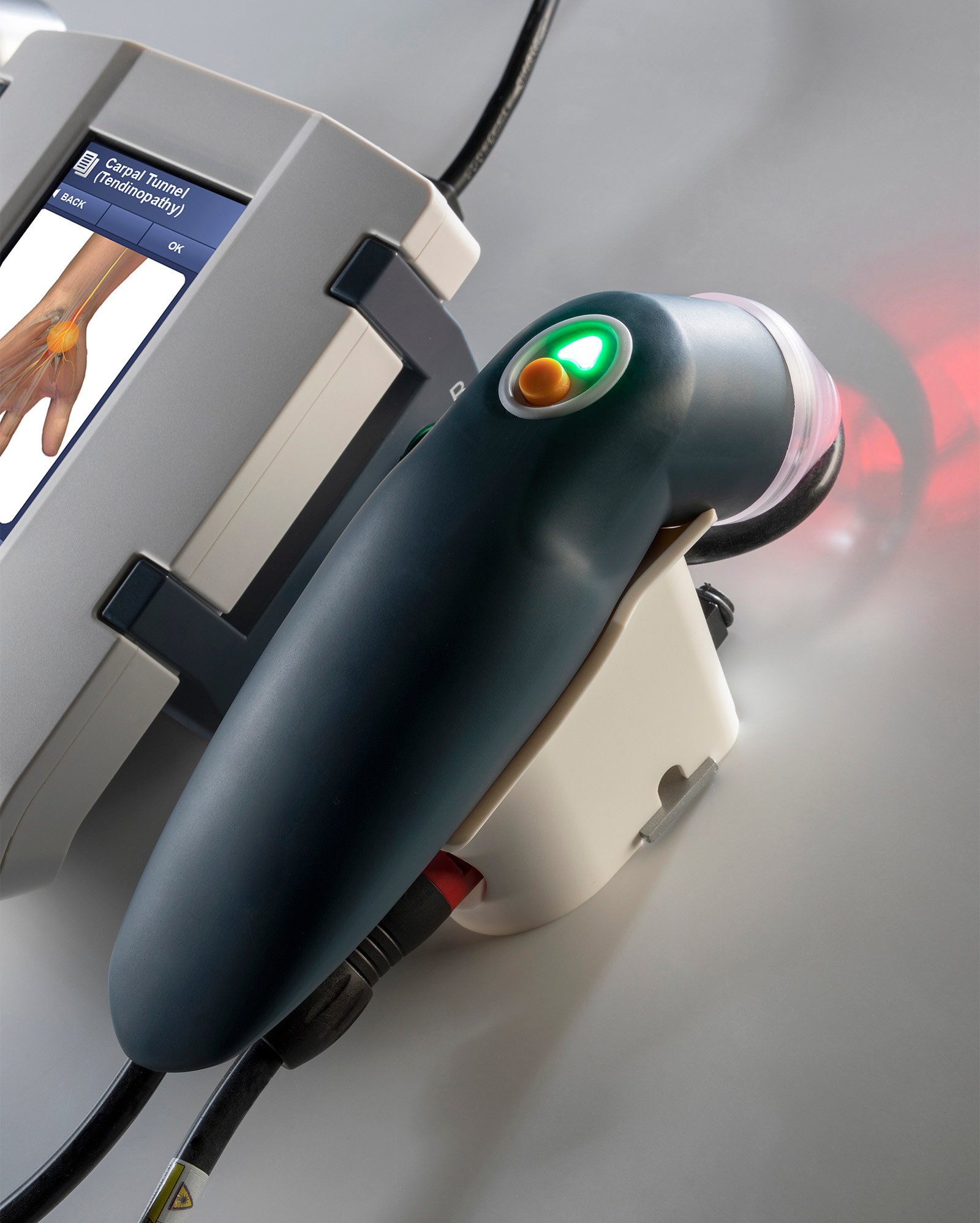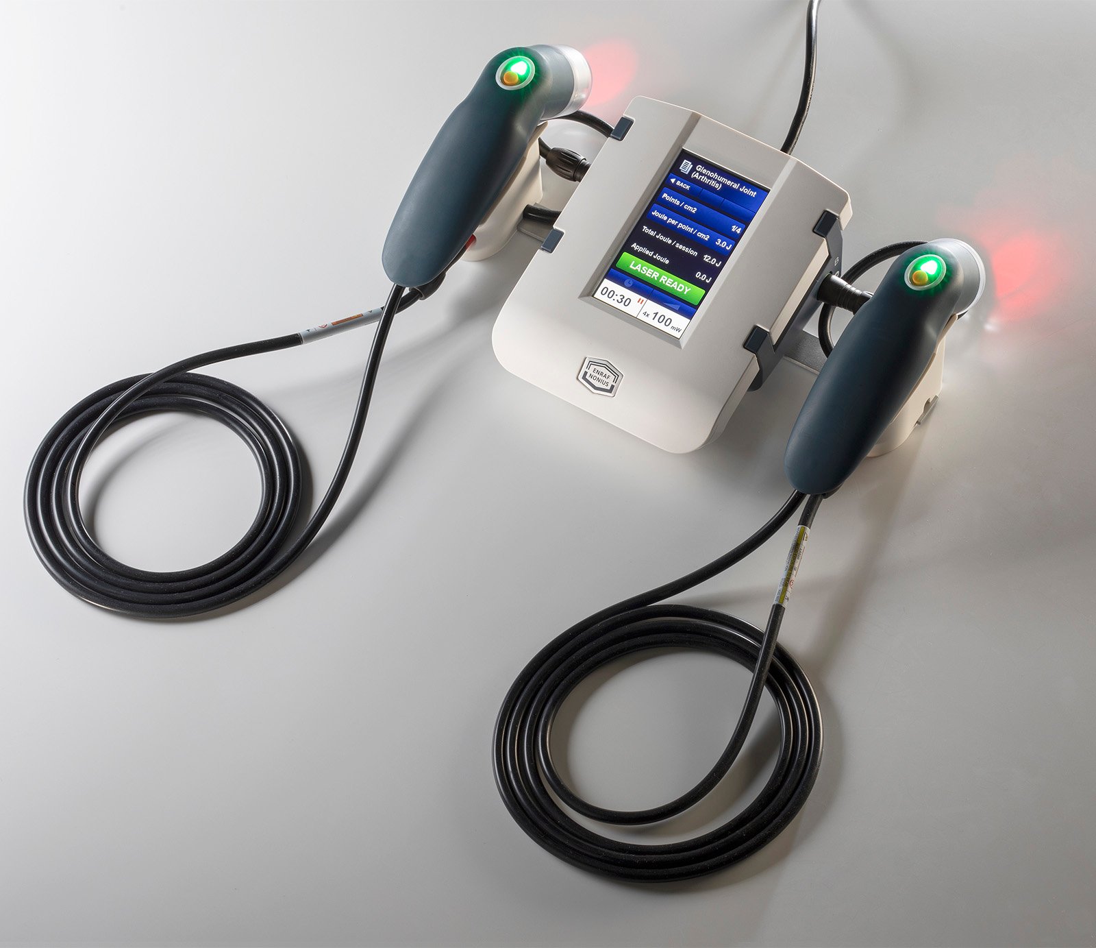 符合人体工学的探头可在皮肤接触或不接触的情况下使用。每个探头都配有一个“开始暂停”按钮,便于控制。探头顶部的指示灯指示发射状态(激光运行或激光就绪)。